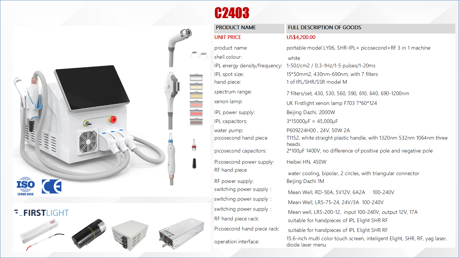 C2403 portable model LY06 SHR-IPL+ picosecond+RF 3 in 1 machine